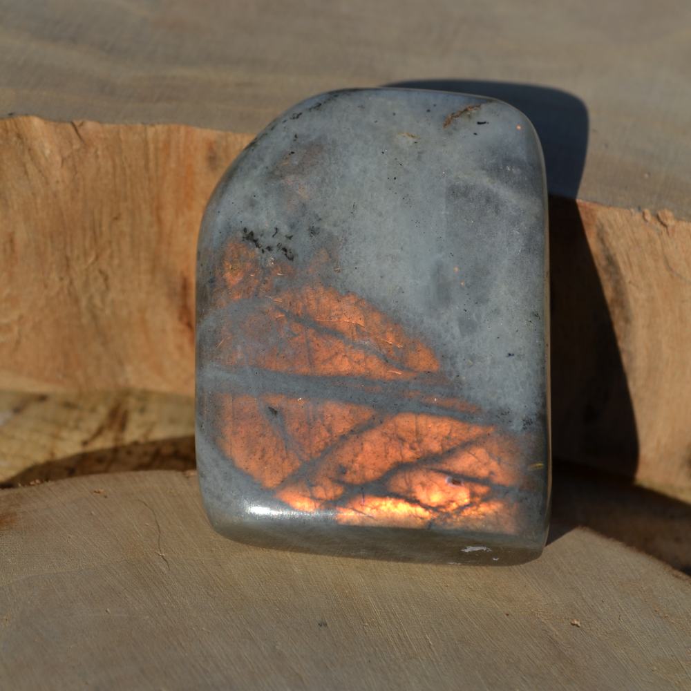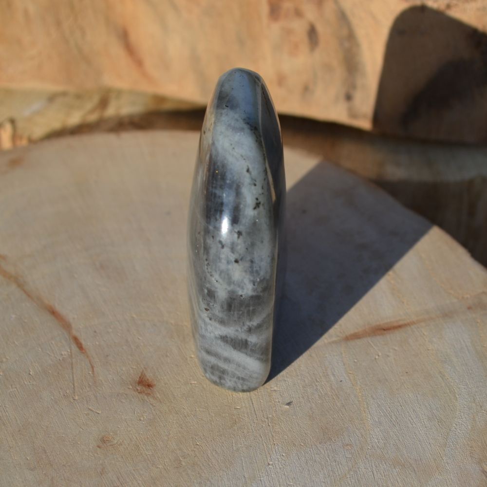 Magnifique forme libre de Larvikite (Labradorite grise) d'un poids de 78 g. Cette pièce est unique, vous recevez la pierre en photo.