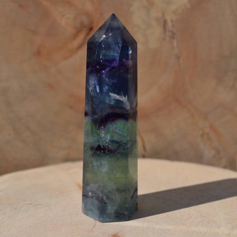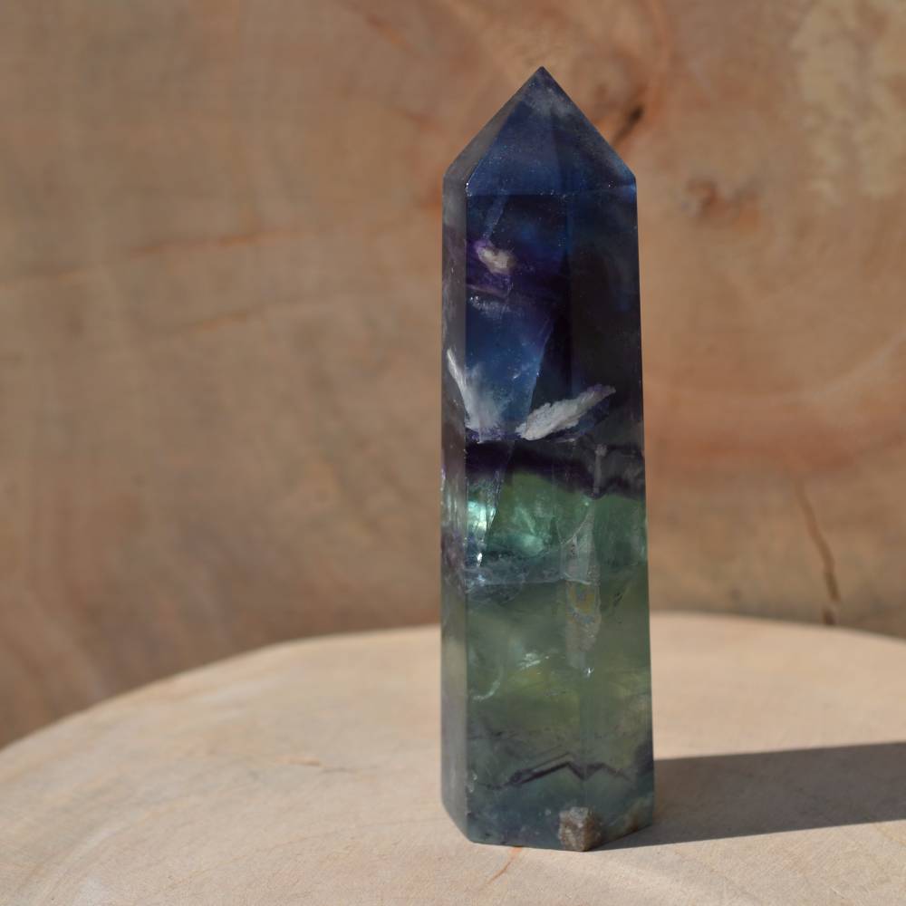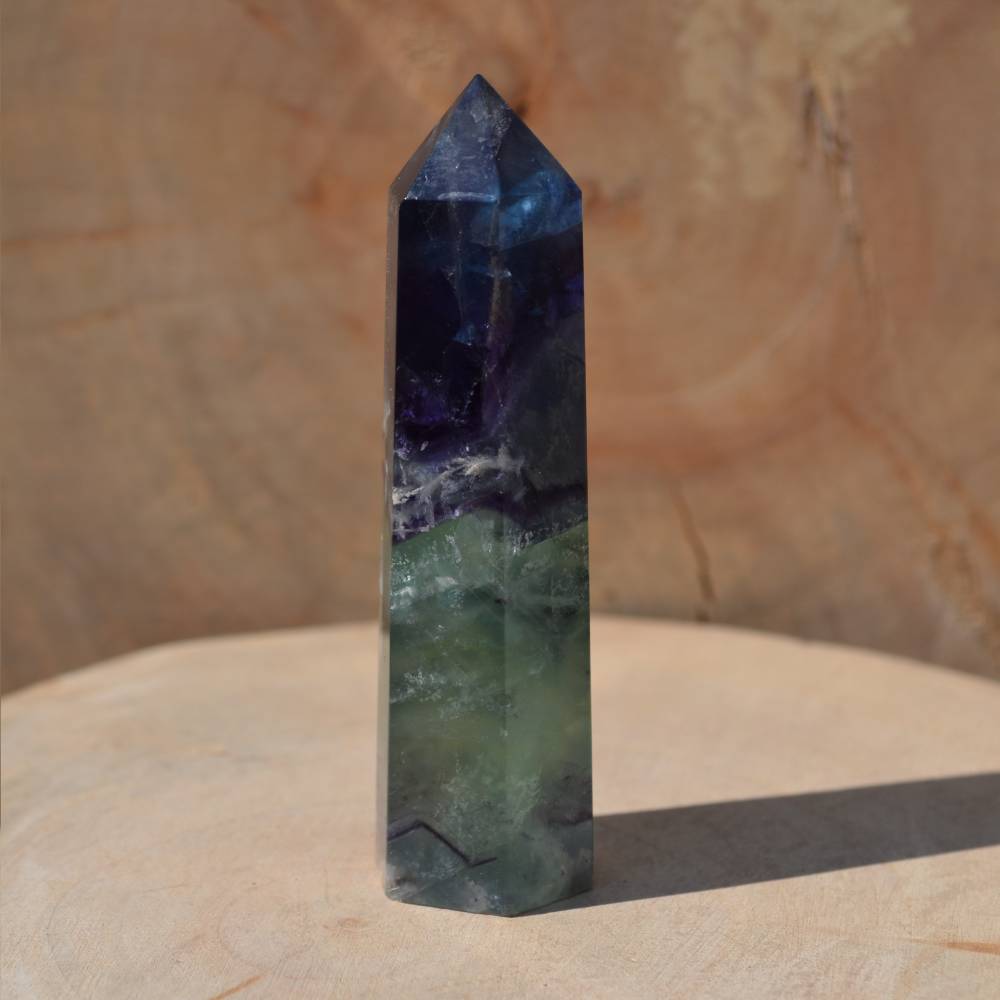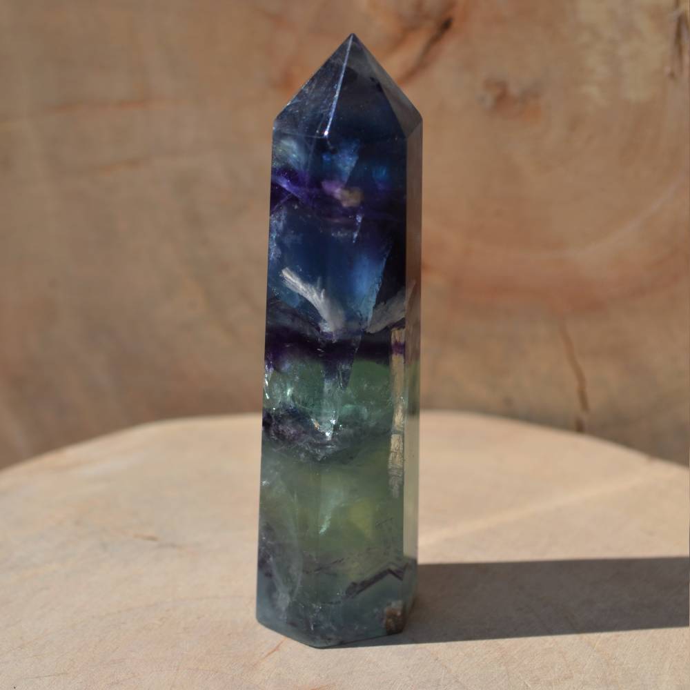 Magnifique pointe de Fluorite multicolore d'un poids de 50.50g. Cette pièce est unique, vous recevez la pierre en photo.