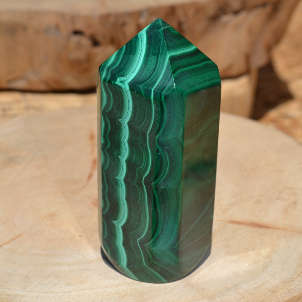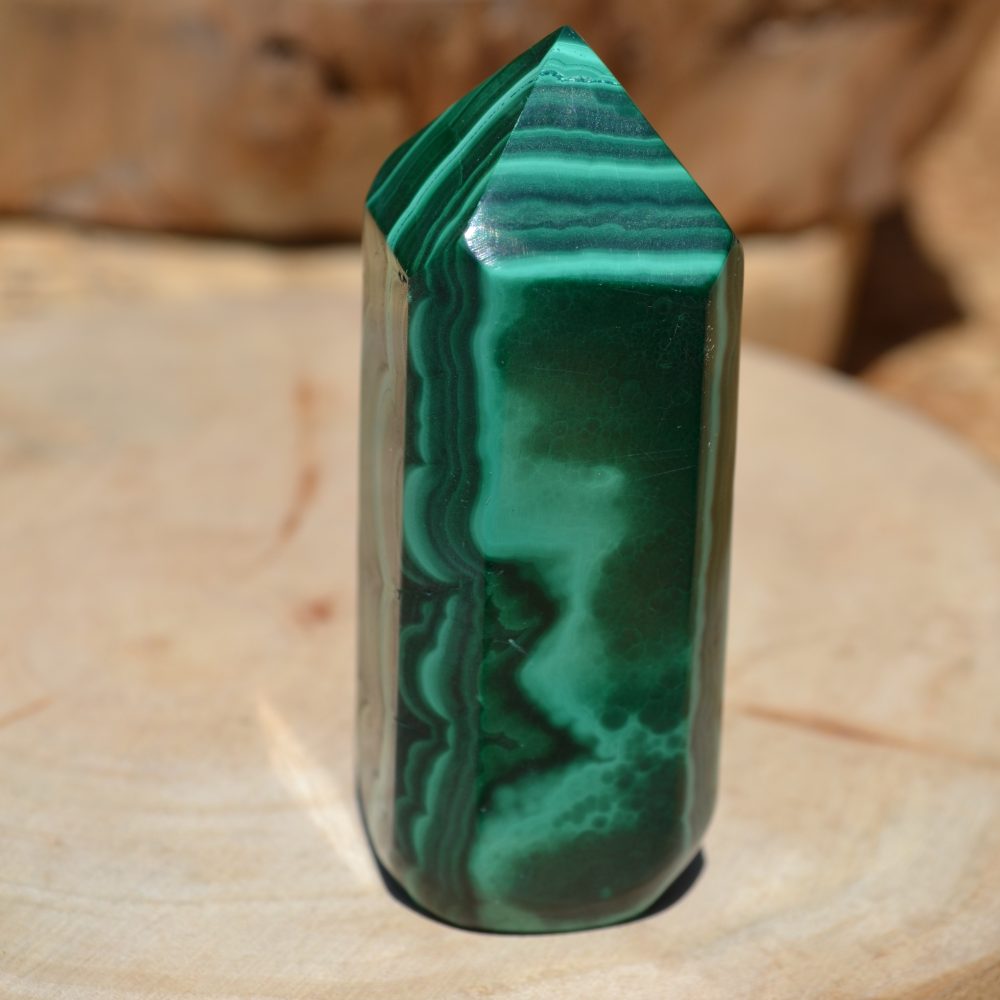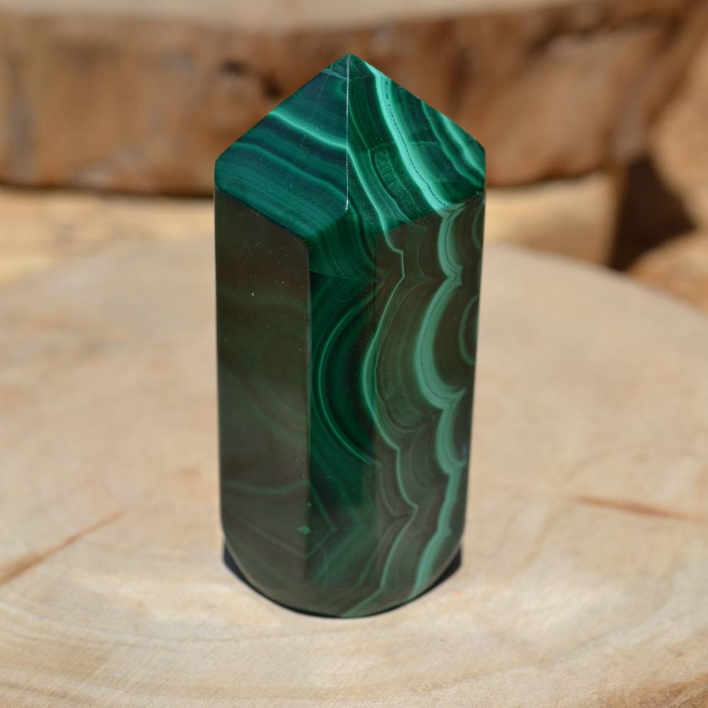 La Malachite figure l’évolution et la continuité des naissances, des renaissances. Elle symbolise la transformation, le calme et la protection. Ses vibrations permettent de prendre de nouvelle prise de conscience. Elle favorise le passage à l’acte des hésitants en les sécurisant. De par son rayonnement, elle décuple la réflexion, indispensable aux gens qui ont tendance à se disperser. La Malachite améliore la concentration et la mémoire, elle relance le désir de créativité chez les artistes, les néophytes. C’est la pierre des commerçants car elle développe des capacités de persuasions en permettant un discours clair, assuré et structuré.