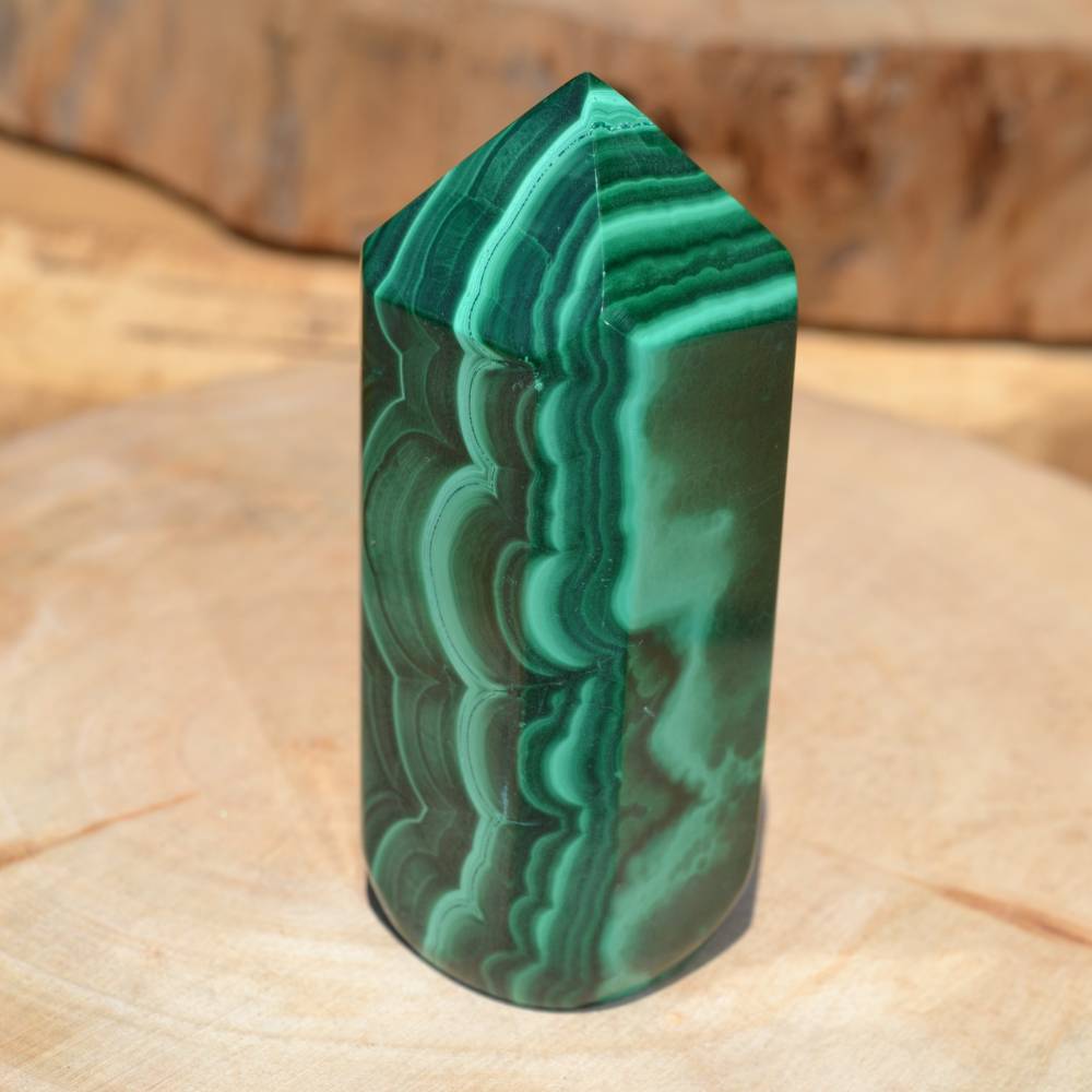 Magnifique pointe de Malachite d'un poids de 129.80 g. Cette pièce est unique, vous recevez la pierre en photo.
