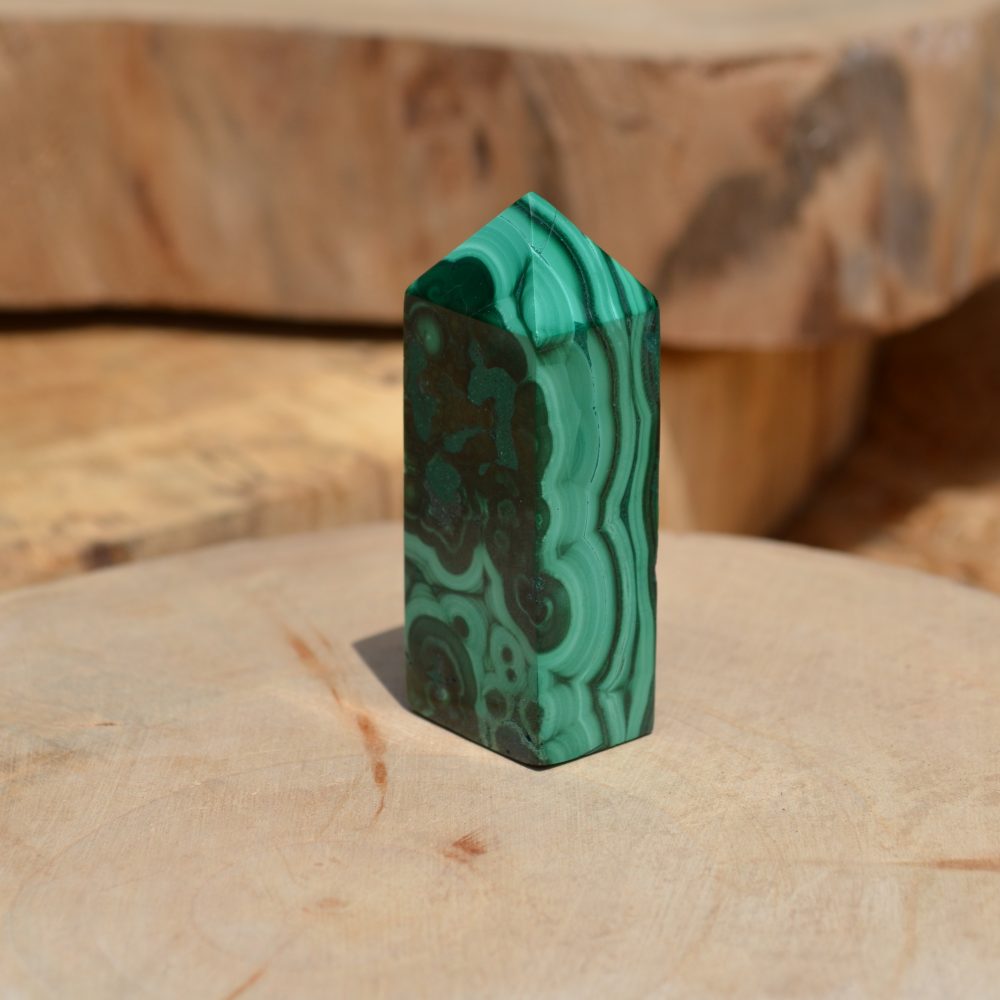 Magnifique pointe de Malachite d'un poids de 44.60 g. Cette pièce est unique, vous recevez la pierre en photo.