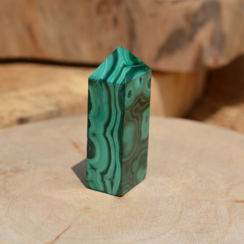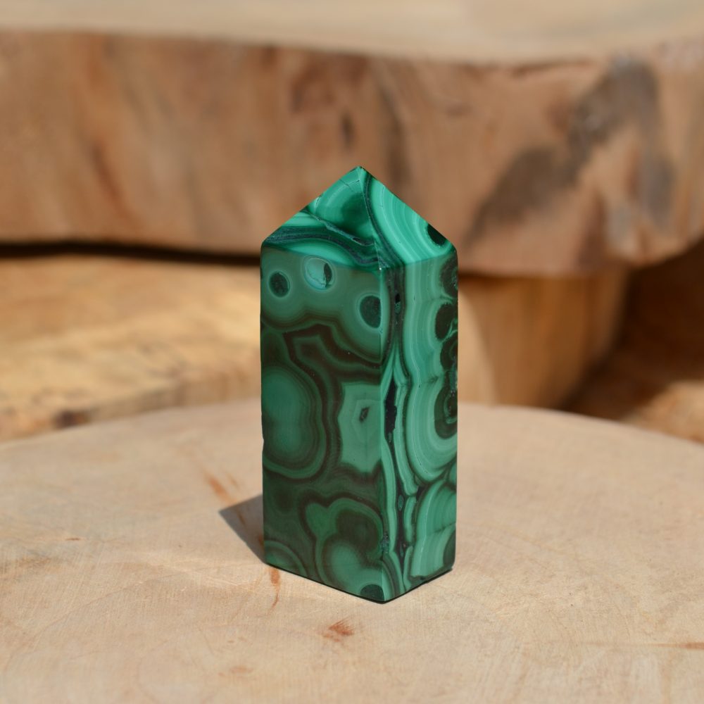 La Malachite figure l’évolution et la continuité des naissances, des renaissances. Elle symbolise la transformation, le calme et la protection. Ses vibrations permettent de prendre de nouvelle prise de conscience. Elle favorise le passage à l’acte des hésitants en les sécurisant. De par son rayonnement, elle décuple la réflexion, indispensable aux gens qui ont tendance à se disperser. La Malachite améliore la concentration et la mémoire, elle relance le désir de créativité chez les artistes, les néophytes. C’est la pierre des commerçants car elle développe des capacités de persuasions en permettant un discours clair, assuré et structuré.