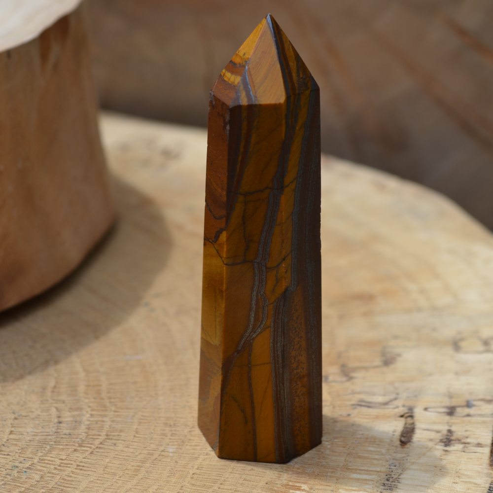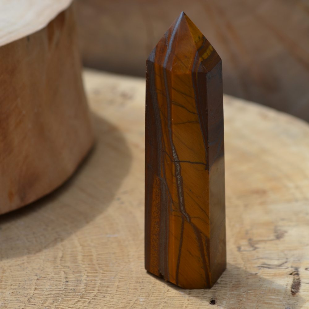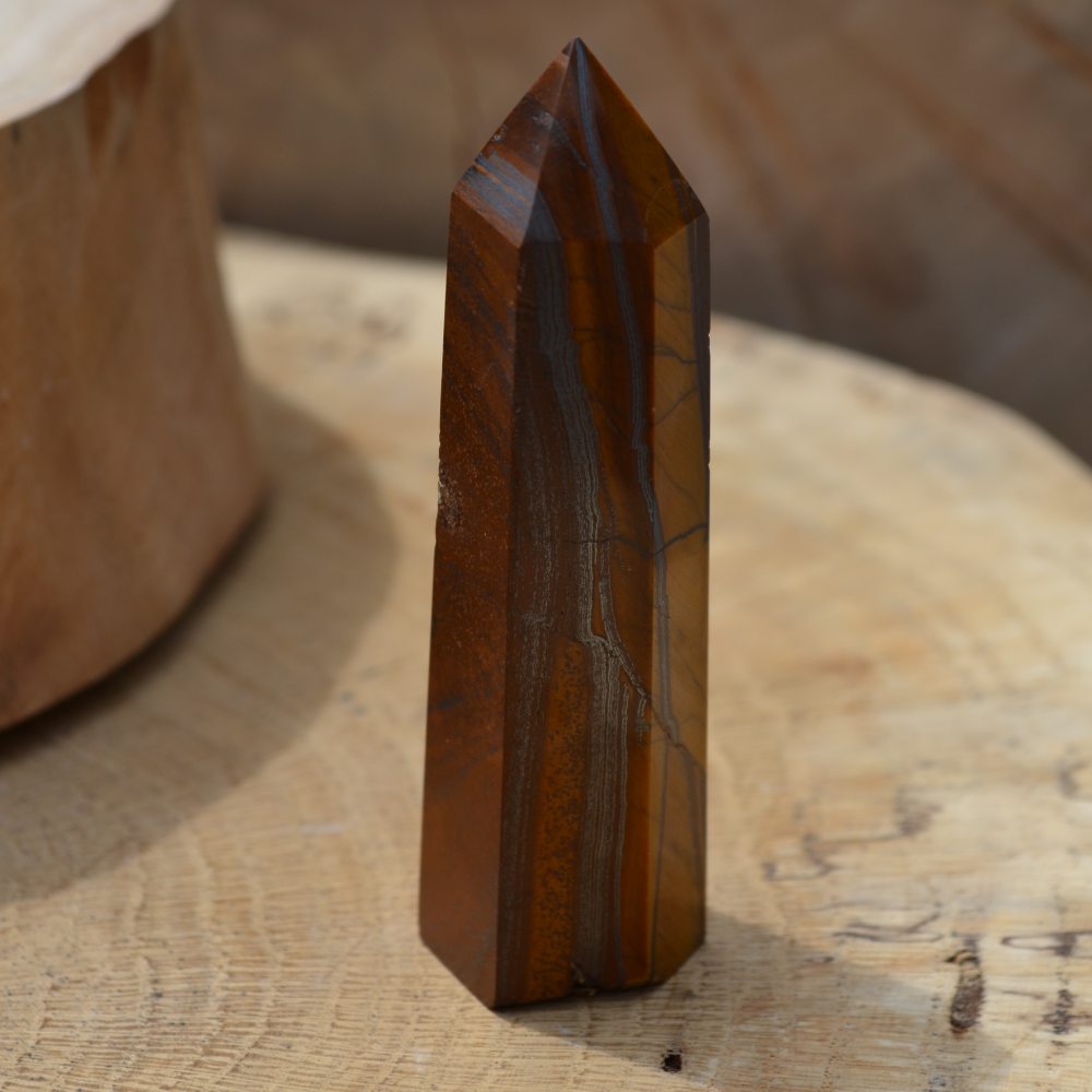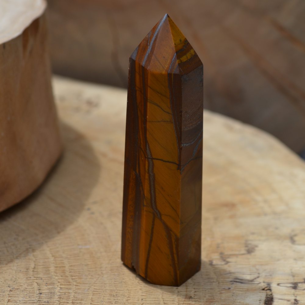 Magnifique pointe d'Oeil de Tigre d'un poids de 57 g. Cette pièce est unique, vous recevez la pierre en photo.